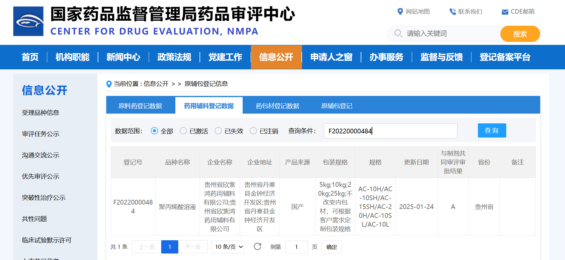 聚丙烯酸溶液(登记号F20220000484)通过关联审评